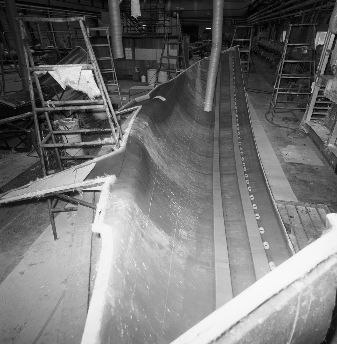 Skrovformen till Segelbåten Rhapsody 43 i plastverkstan