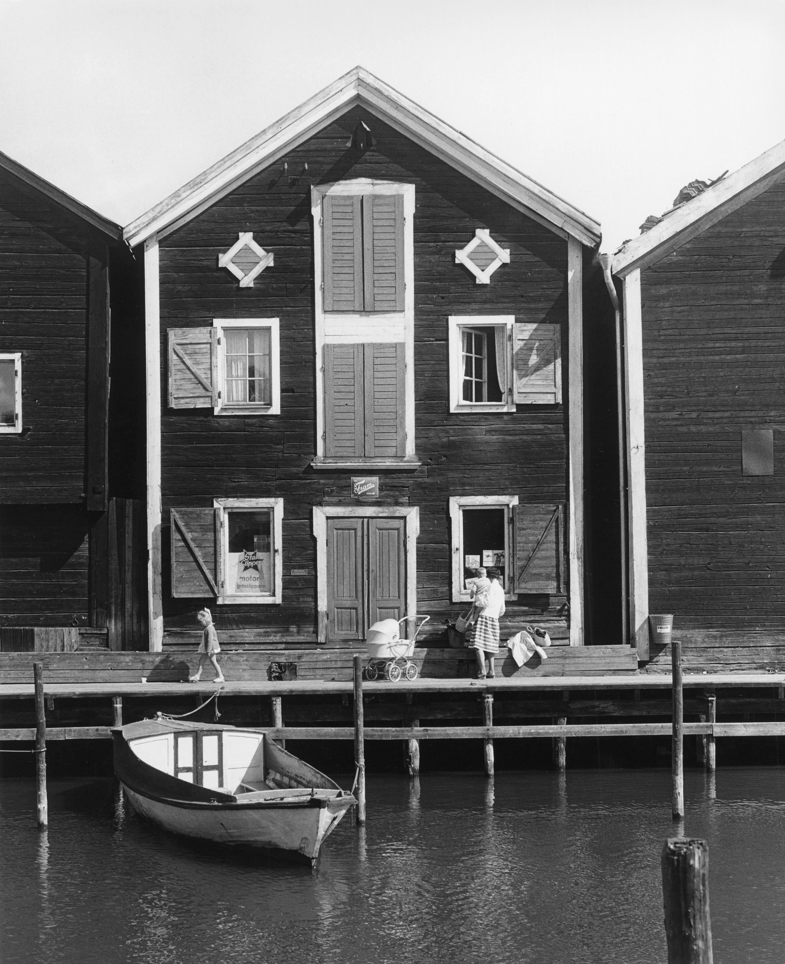 Beskrivning: Möljen, sjöbodar vid Strömmingssundet. Bilden troligen från början av 1960-talet.