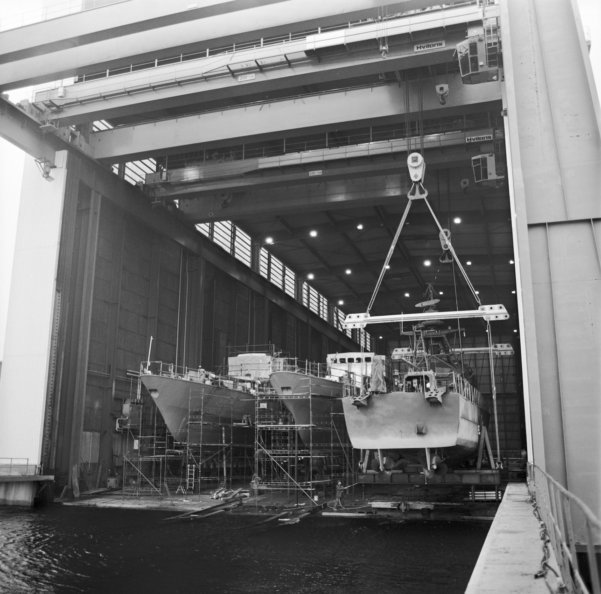 Lyft av patrullbåten Mjölner in i skrovhallen