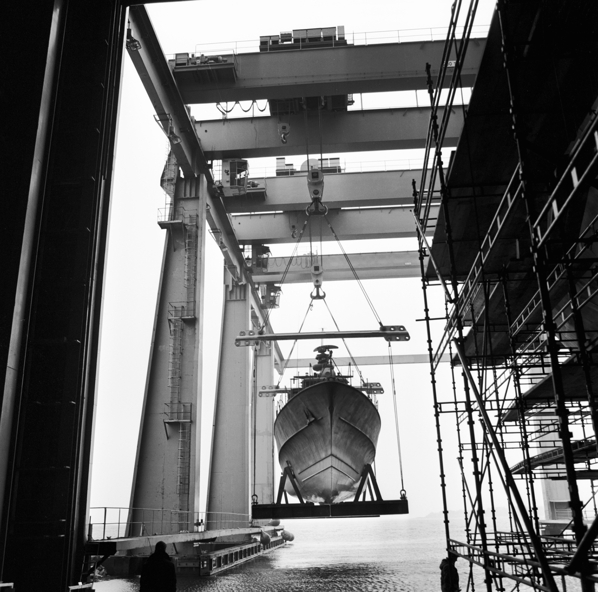 Lyft av patrullbåten Mjölner in i skrovhallen