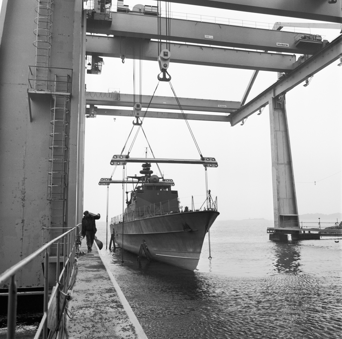 Lyft av patrullbåten Mjölner in i skrovhallen