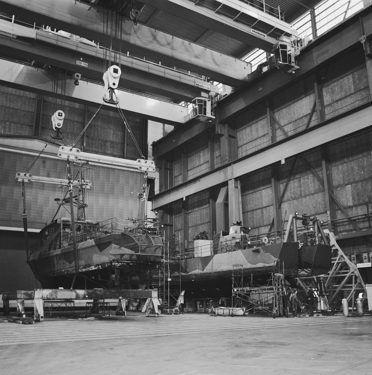 Översiktsbilder av fartyg i mellanhallen och skrovhallen