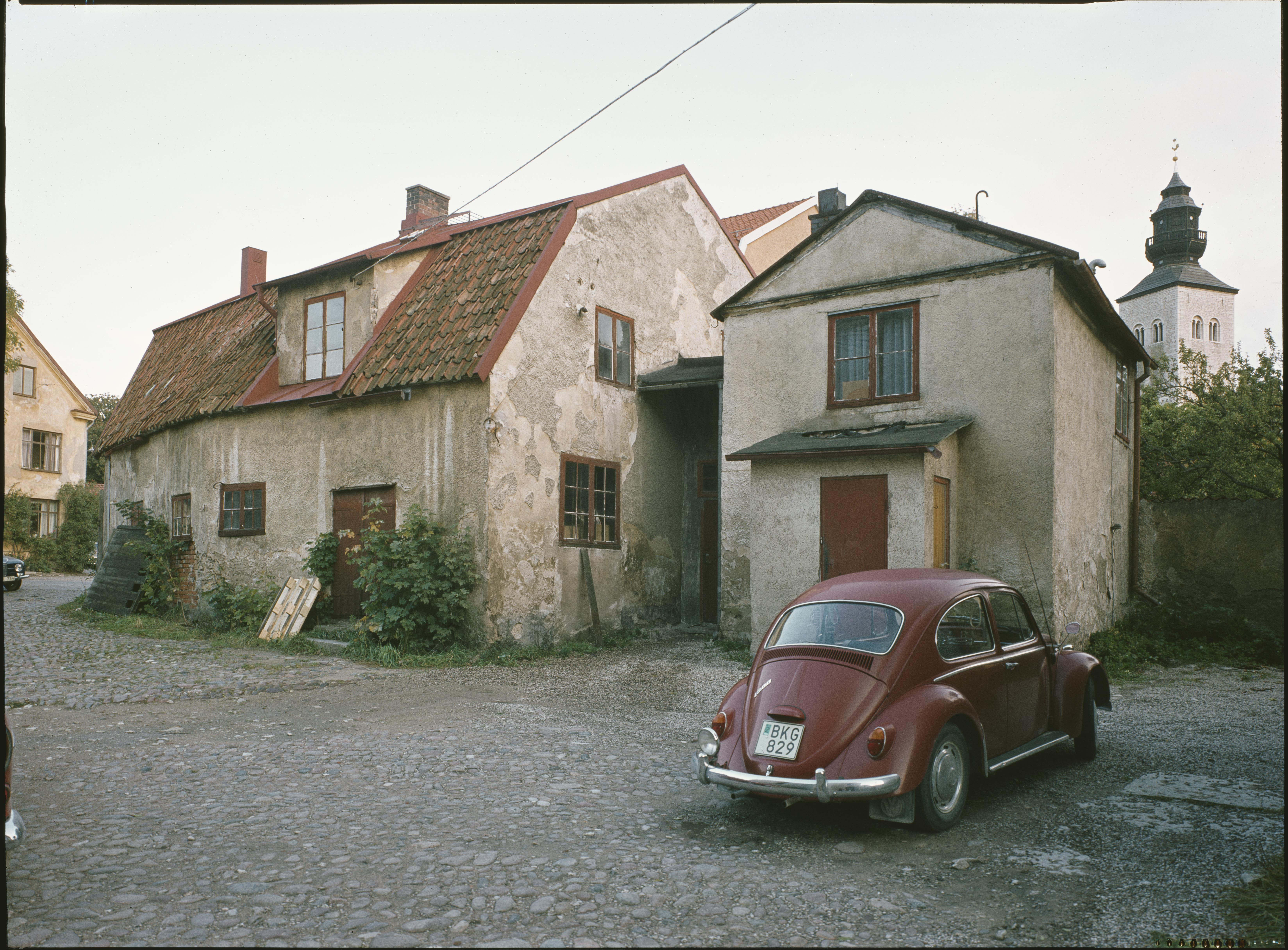 Visby innerstad. Innergård på Smedjegatan. I bakgrunden Visby Domkyrka.
