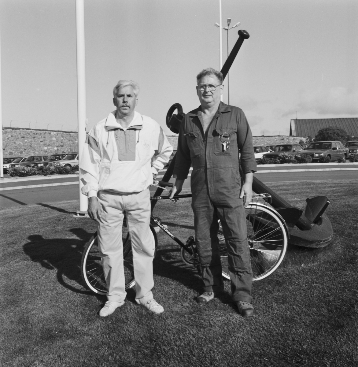 VD H. Hedman överlämnar cykel till vinnare av motionskampanjen
