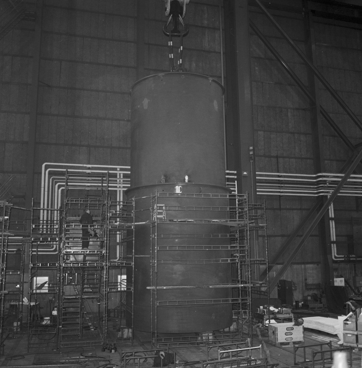 Lyft av stålkärl till kärnkraftverk skrovhallen