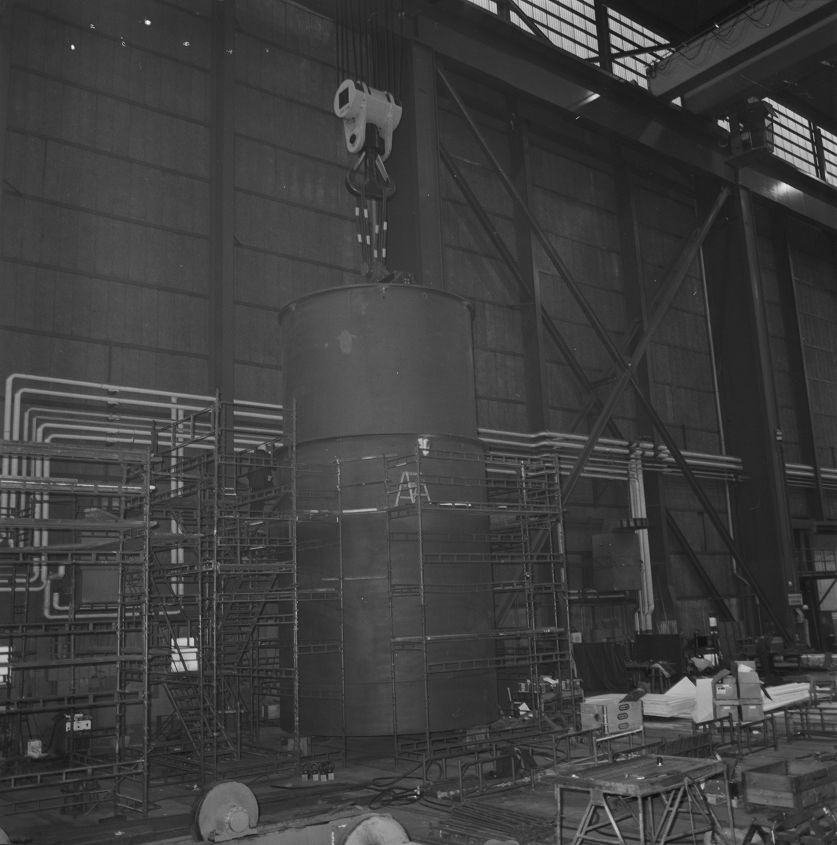 Lyft av stålkärl till kärnkraftverk skrovhallen