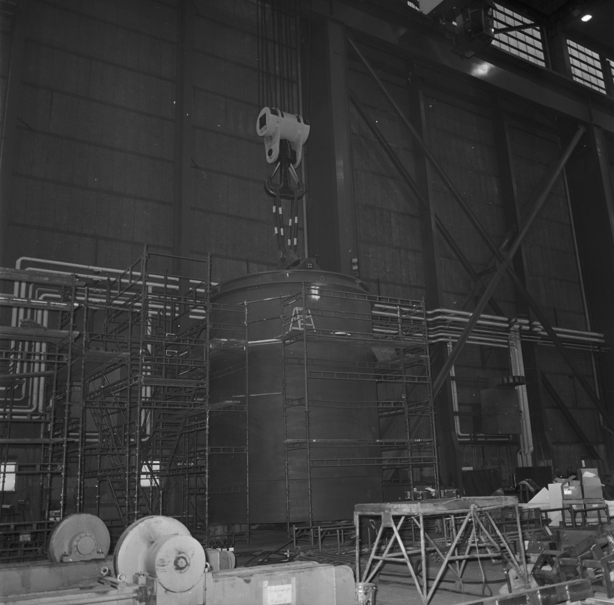 Lyft av stålkärl till kärnkraftverk skrovhallen
