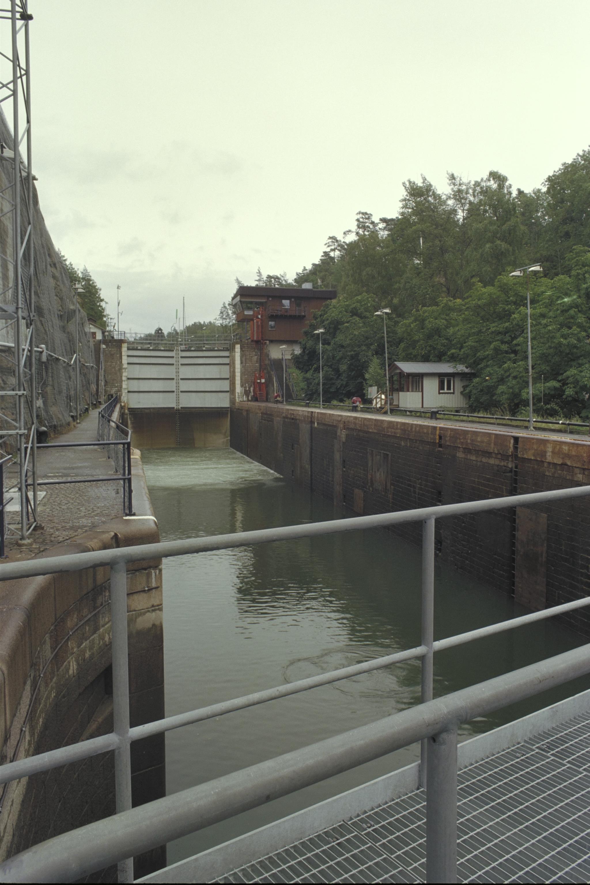 Nedre slussen i 1916-års slussled. Används än idag för trafik. (2010)