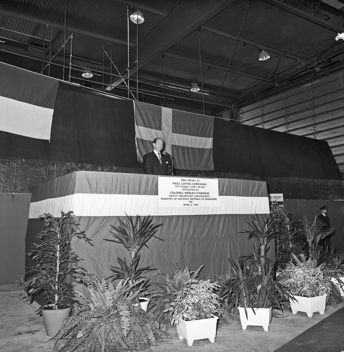 Titel: Kölläggningsceremoni på skrov nr 2 Singapore ftg.