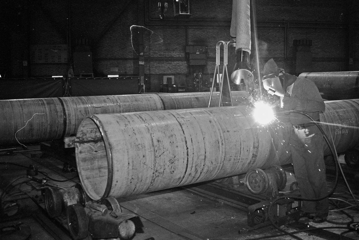 Arbete med torpedtuber till ubåt A19 plåtverkstan