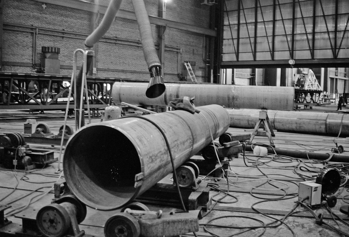 Arbete med torpedtuber till ubåt A19 plåtverkstan