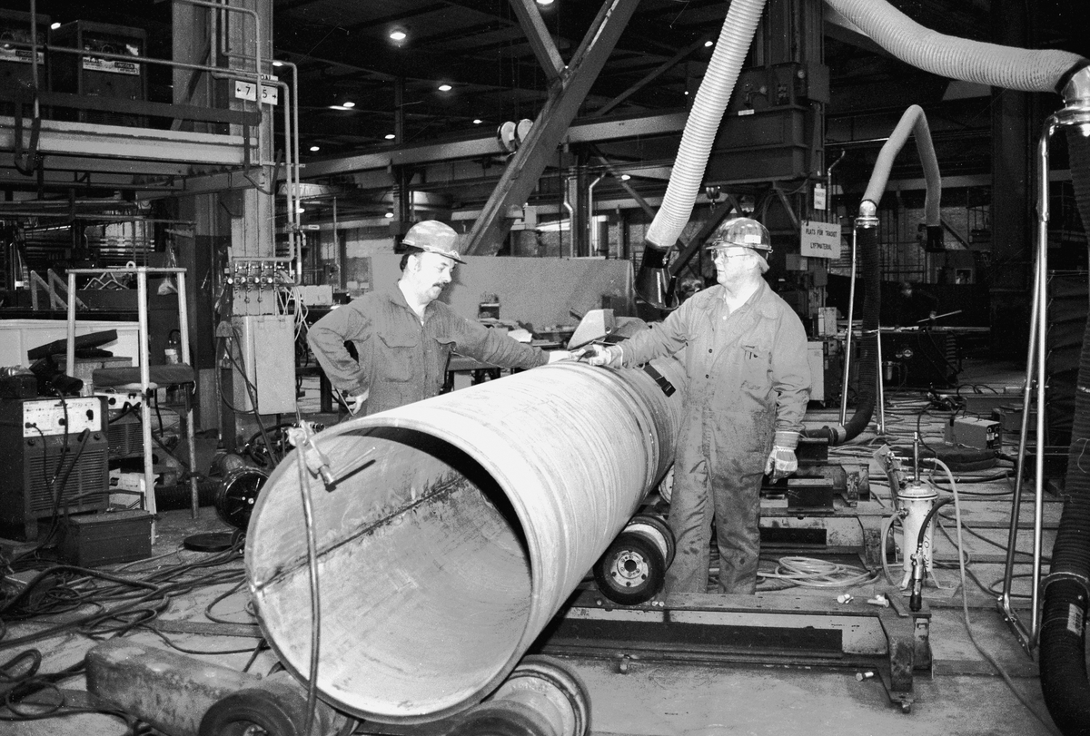 Arbete med torpedtuber till ubåt A19 plåtverkstan