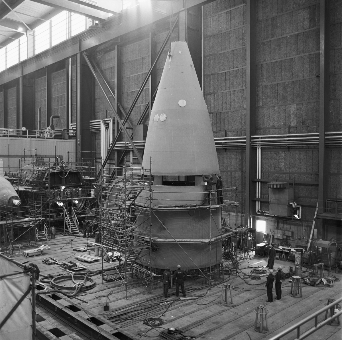 Lyft av ubåtssektion typ Västergötland i skrovhallen