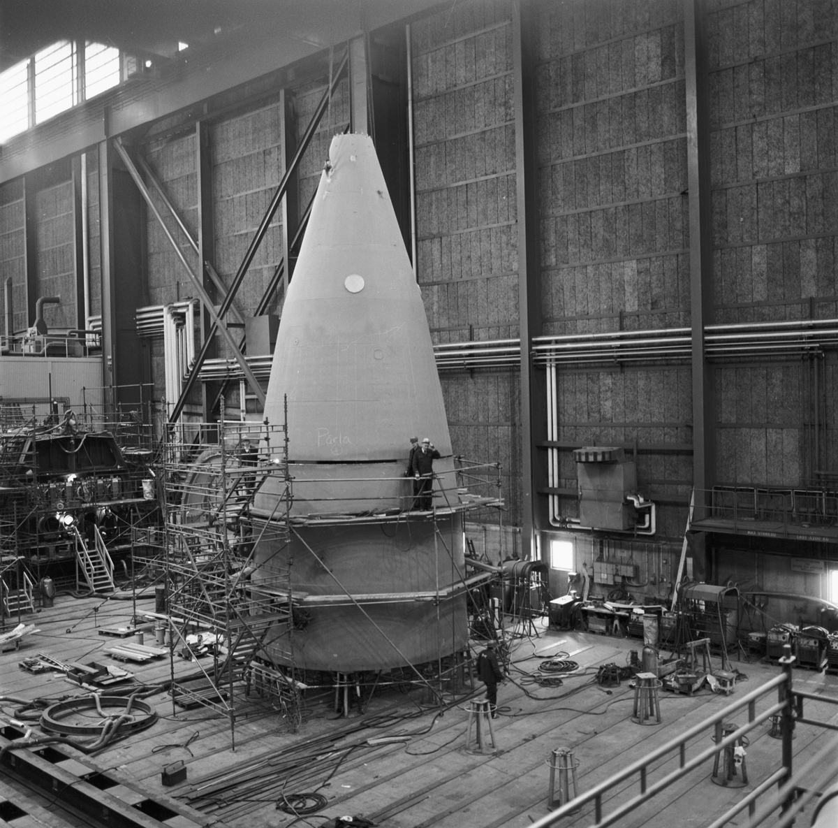 Lyft av ubåtssektion typ Västergötland i skrovhallen