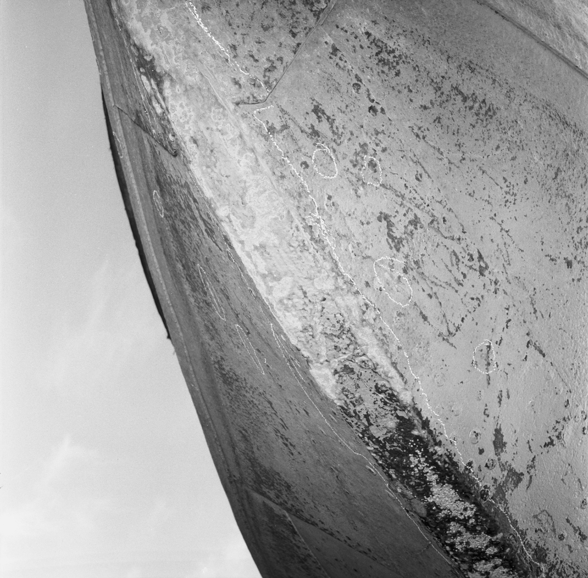 Oljepråmen Bersek bottenbehabdling skrovsekt.