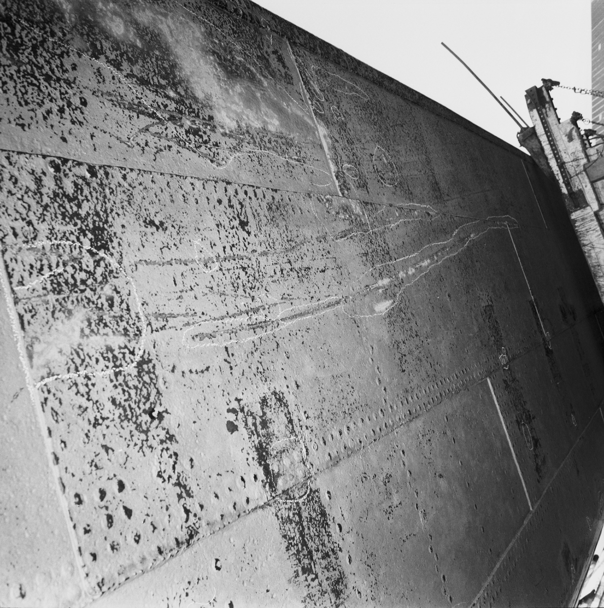 Oljepråmen Bersek bottenbehabdling skrovsekt.