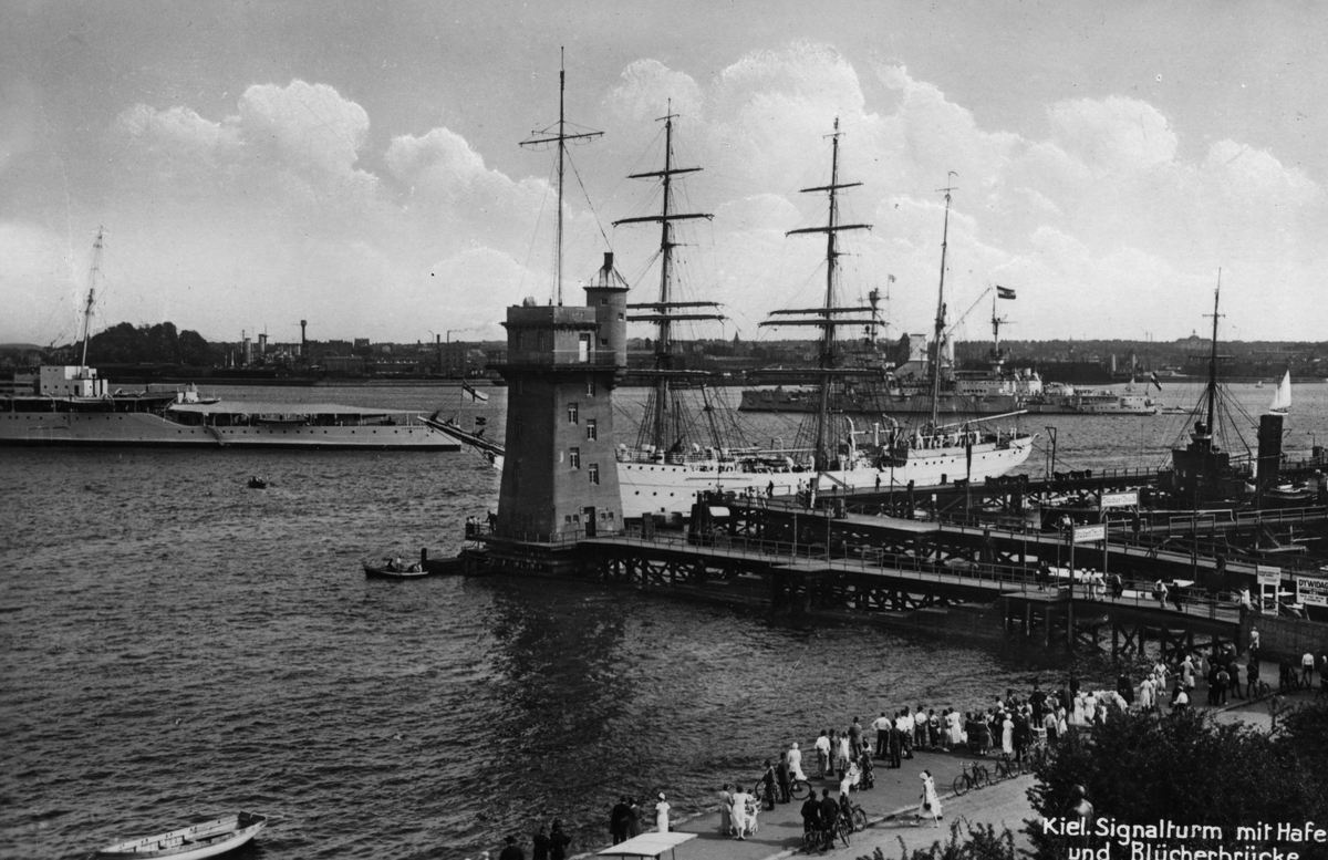 Kiel. Signalturm mit Hafen und Blücherbrücke.