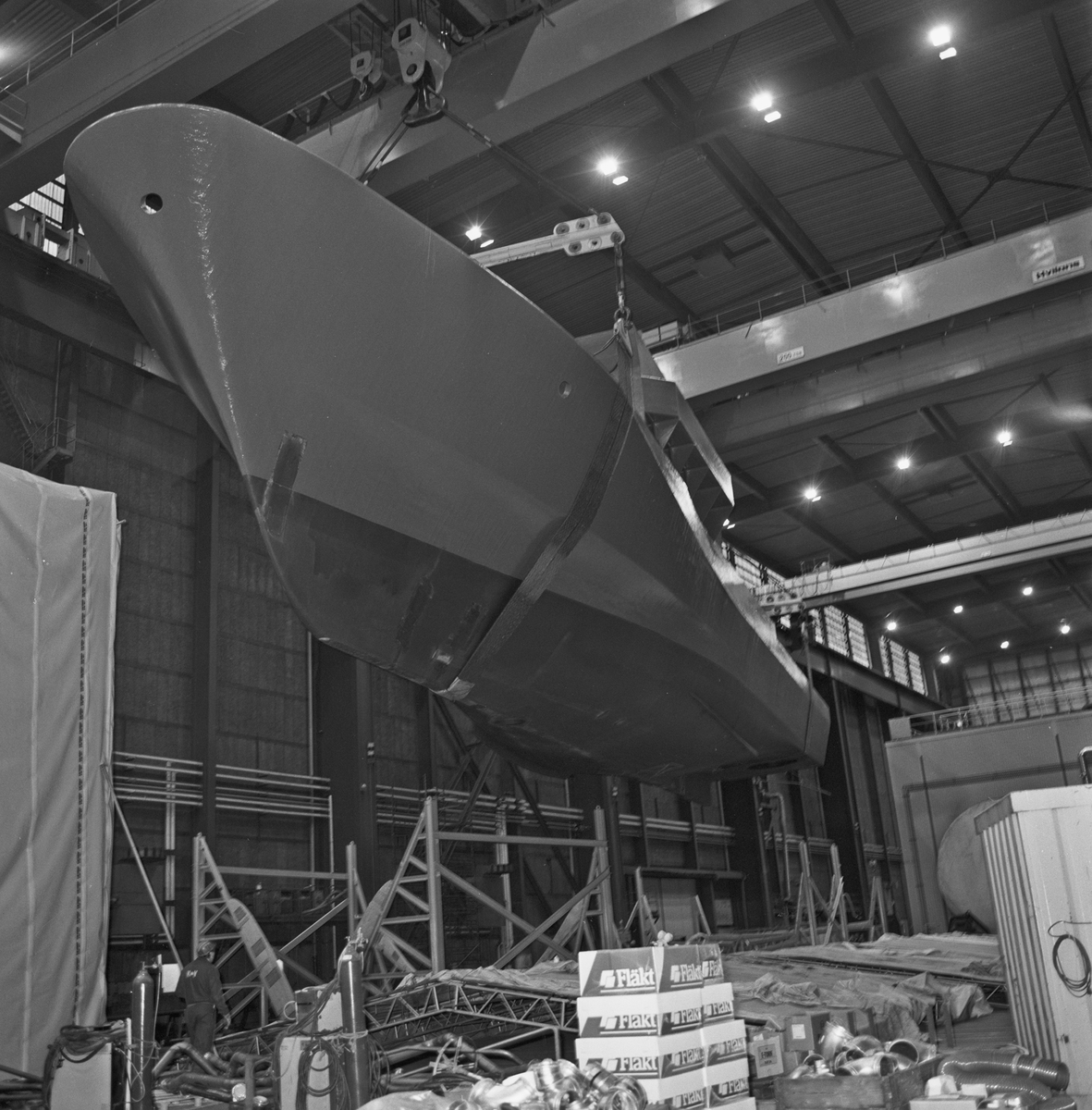 Lyft av Nyb 436 Singapor fartyget från mellanhallen till skrovhallen