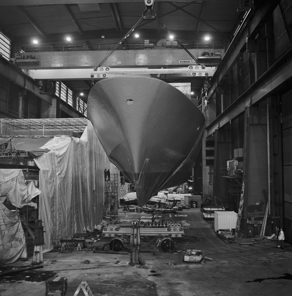 Lyft av Nyb 436 Singapor fartyget från mellanhallen till skrovhallen