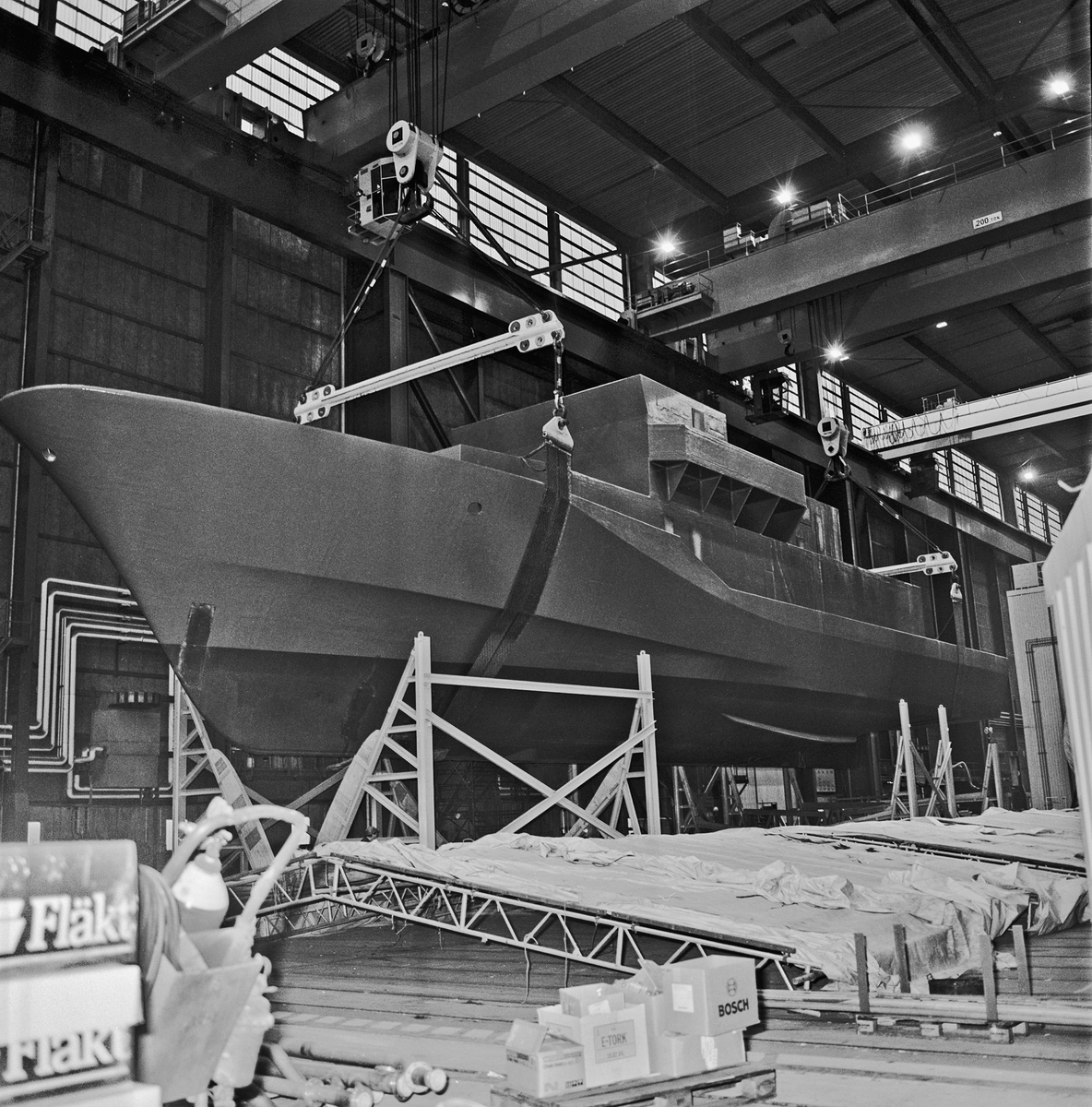 Titel: Lyft av Nyb 436 Singapor fartyget från mellanhallen till skrovhallen