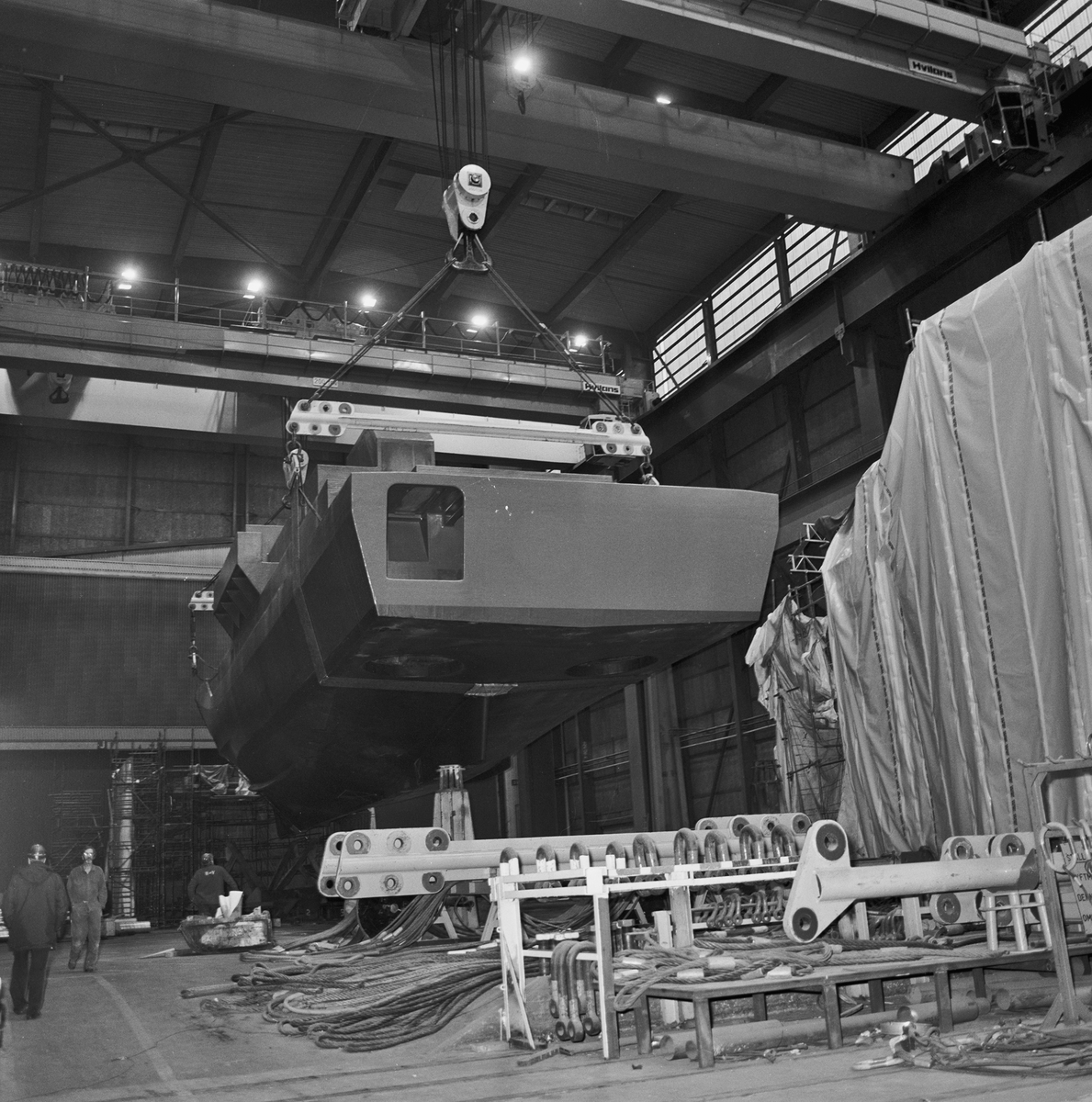 Lyft av Nyb 436 Singapor fartyget från mellanhallen till skrovhallen