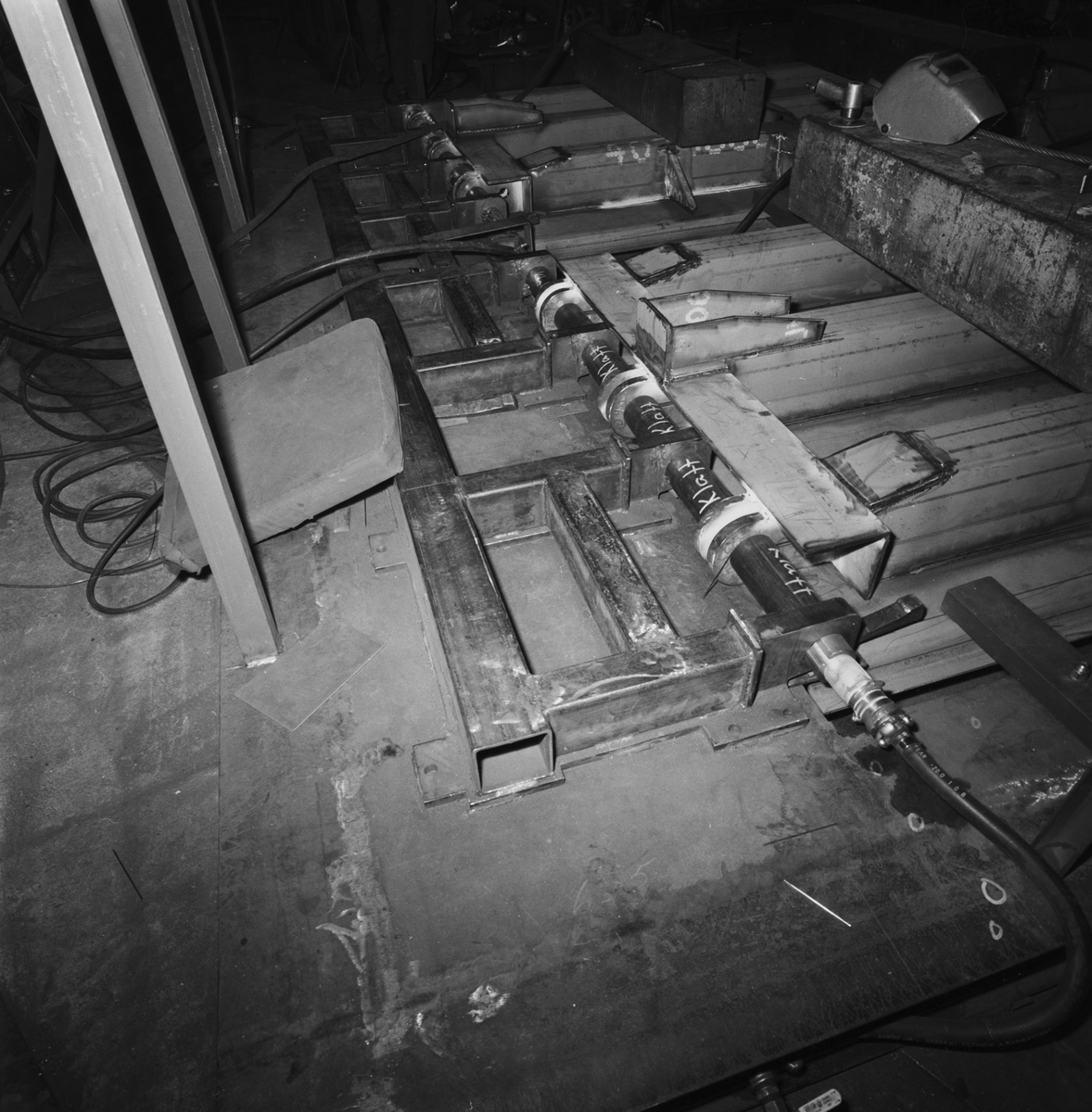 Arbetsbilder på krigsbro 48 m i plåtverkst.
