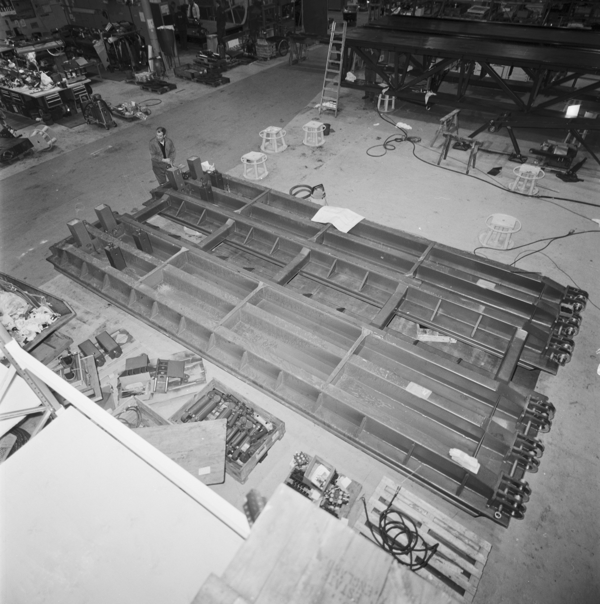 Arbetsbilder på krigsbro 48 m i plåtverkst.