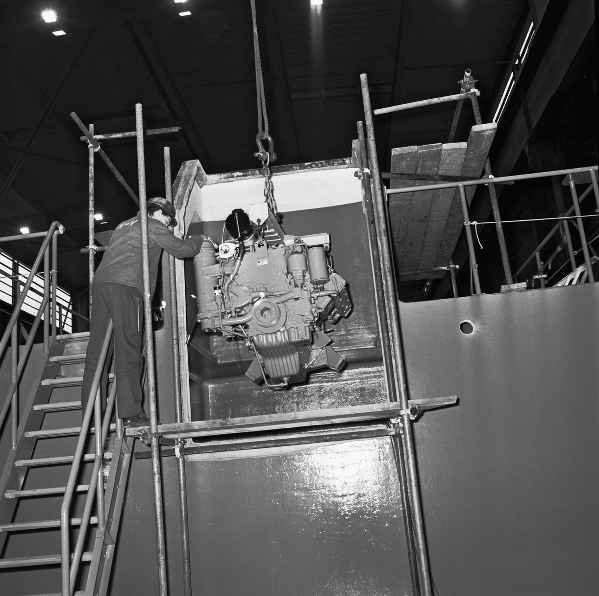 Titel: Lyft av motor till maskinrum Nyb 435 Singapor