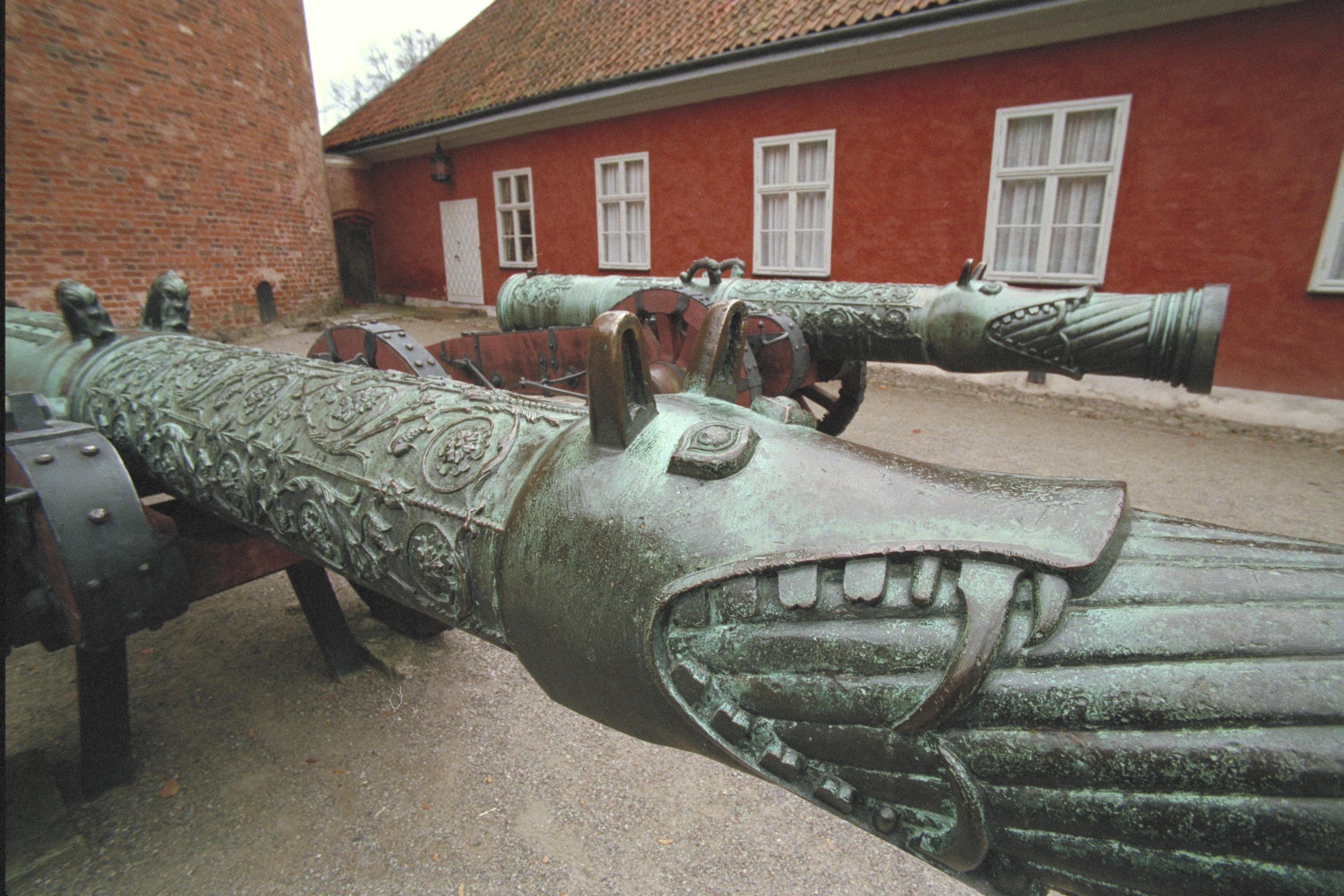 Yttre borggården med brons- kanonerna Galten och Suggan.
