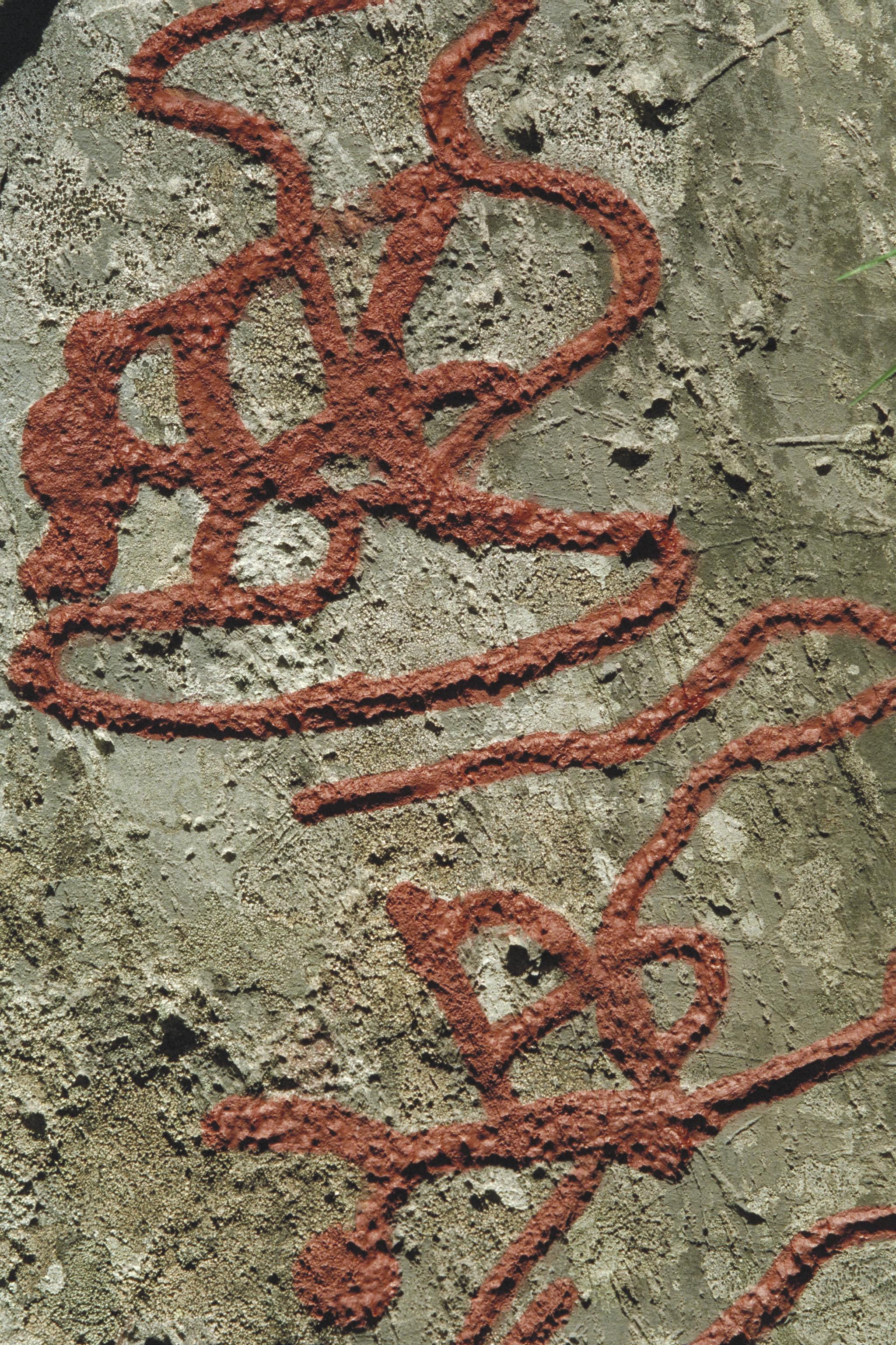 Hällristning Högbyn, RAÄ-nummer Tisselskog 11:1. Baksidan mot Ö. Svårtolkad.