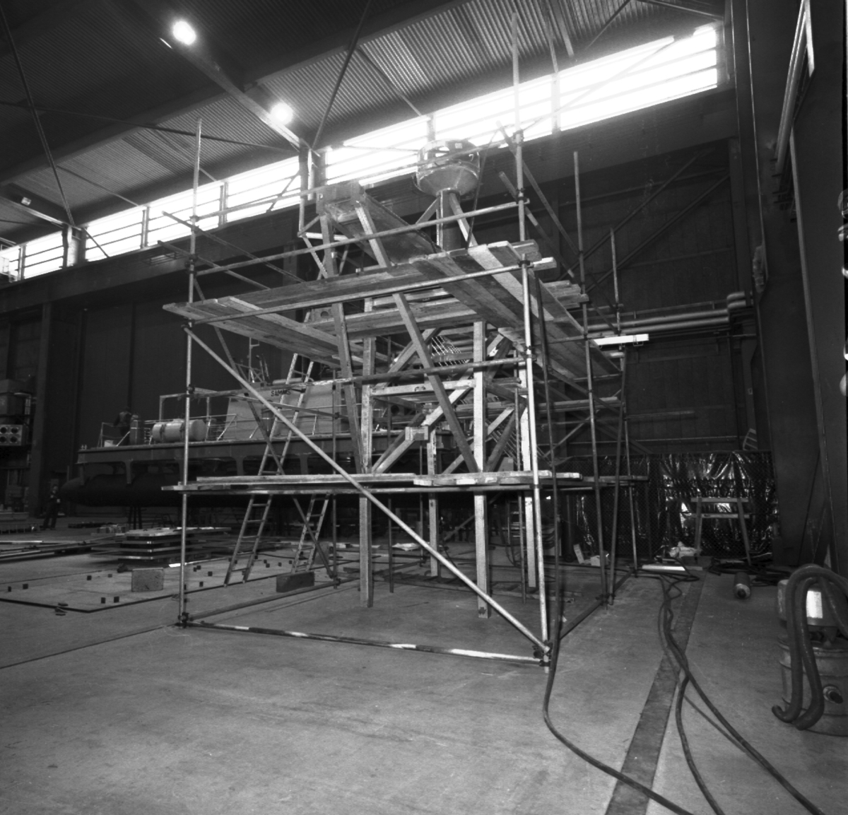 Arbetsställningar kring radarantenn vid Spica IIs ombyggnad\\\\anm. neg ingår i en serie om 3 st varav endast det första \\V 94255 scannats/gp