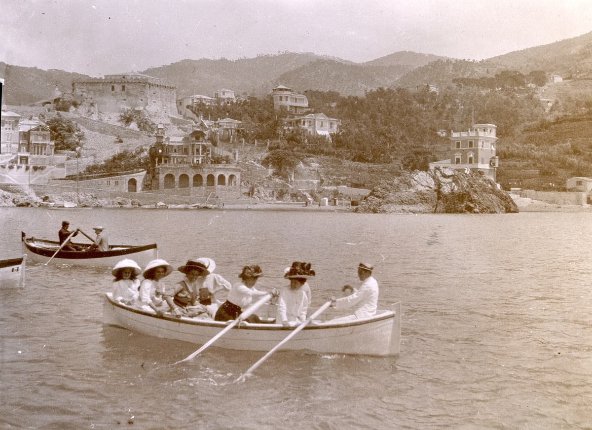 Båtbild, damer eskorterar ubåten HVALEN vid avfärd?
