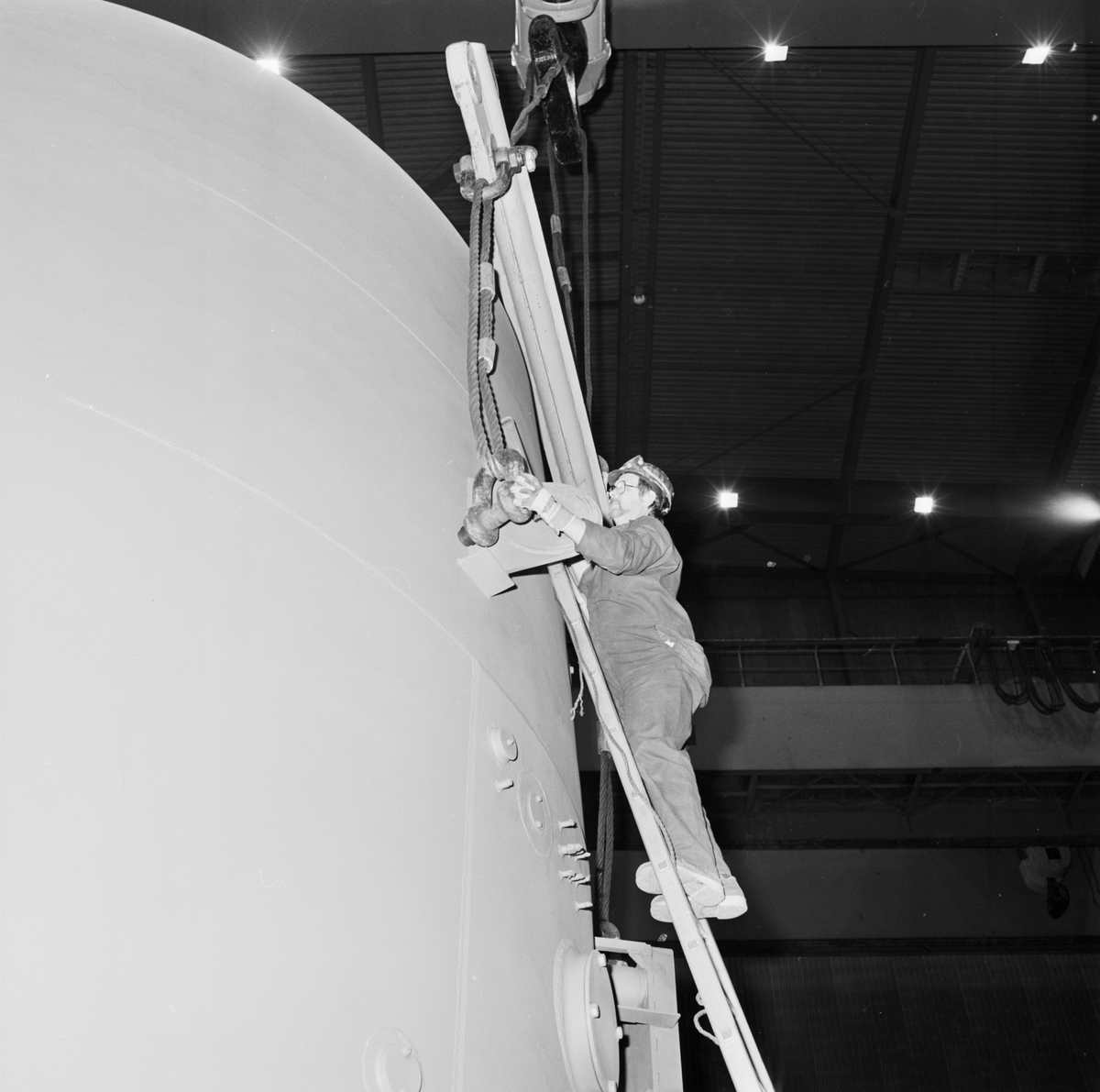 Personal i arbete vid transportparken (lyft av ubåtssektion)