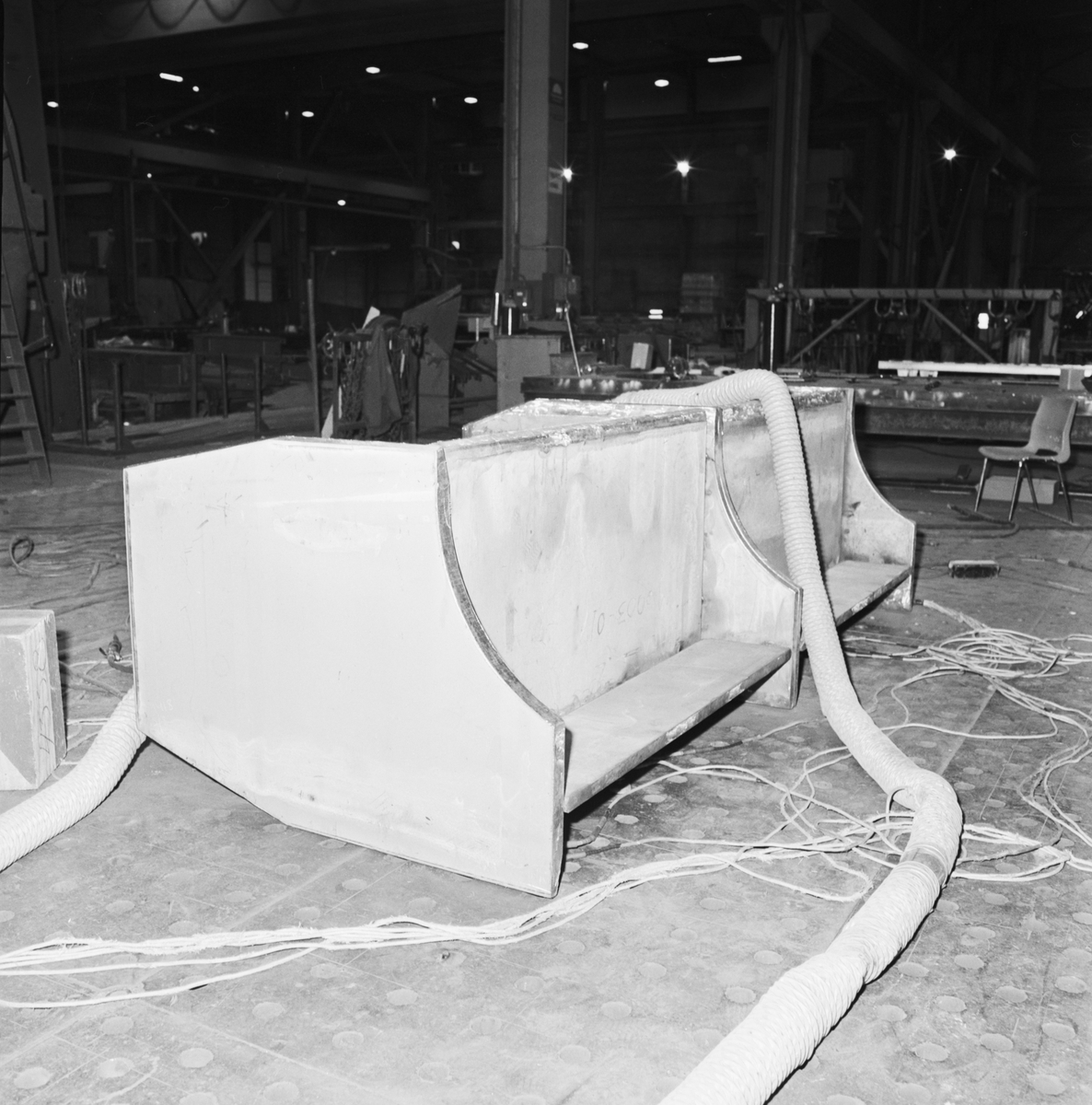 Arbete med bostadsplattform till oljerigg i plåtverkst.