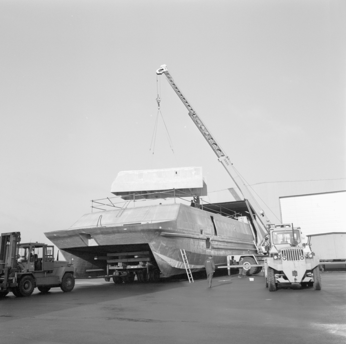 Lyft av däckhus och styrhytt till Norska Sesen båt nr 2