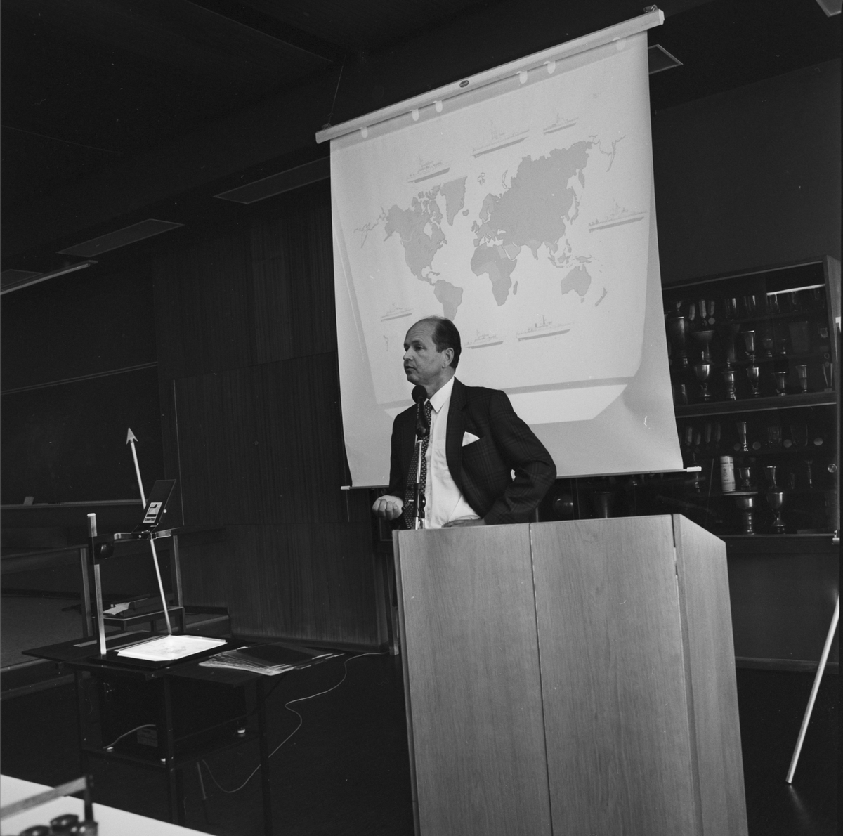 VD Hedman informerar för personal från Ts o tele i matsalen kv-nytt