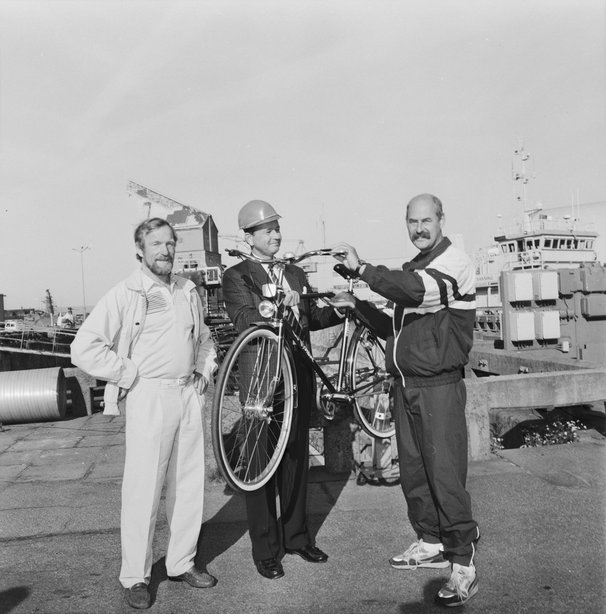 VD H. Hedman överlämnar cykeln till vinnaren C. Carlsson i motionstävlingen
