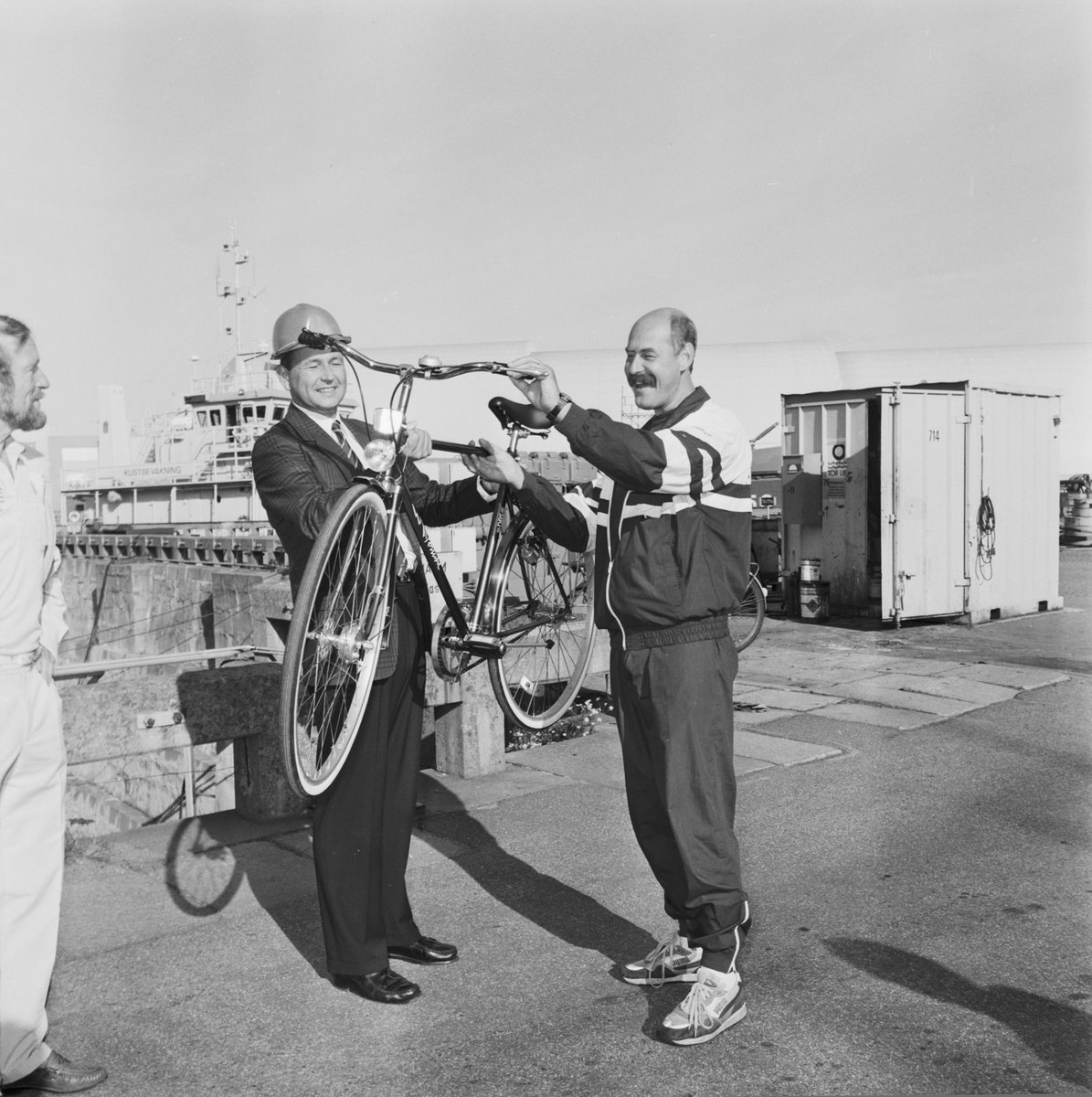 VD H. Hedman överlämnar cykeln till vinnaren C. Carlsson i motionstävlingen