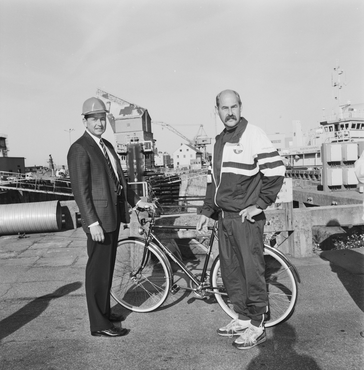 VD H. Hedman överlämnar cykeln till vinnaren C. Carlsson i motionstävlingen