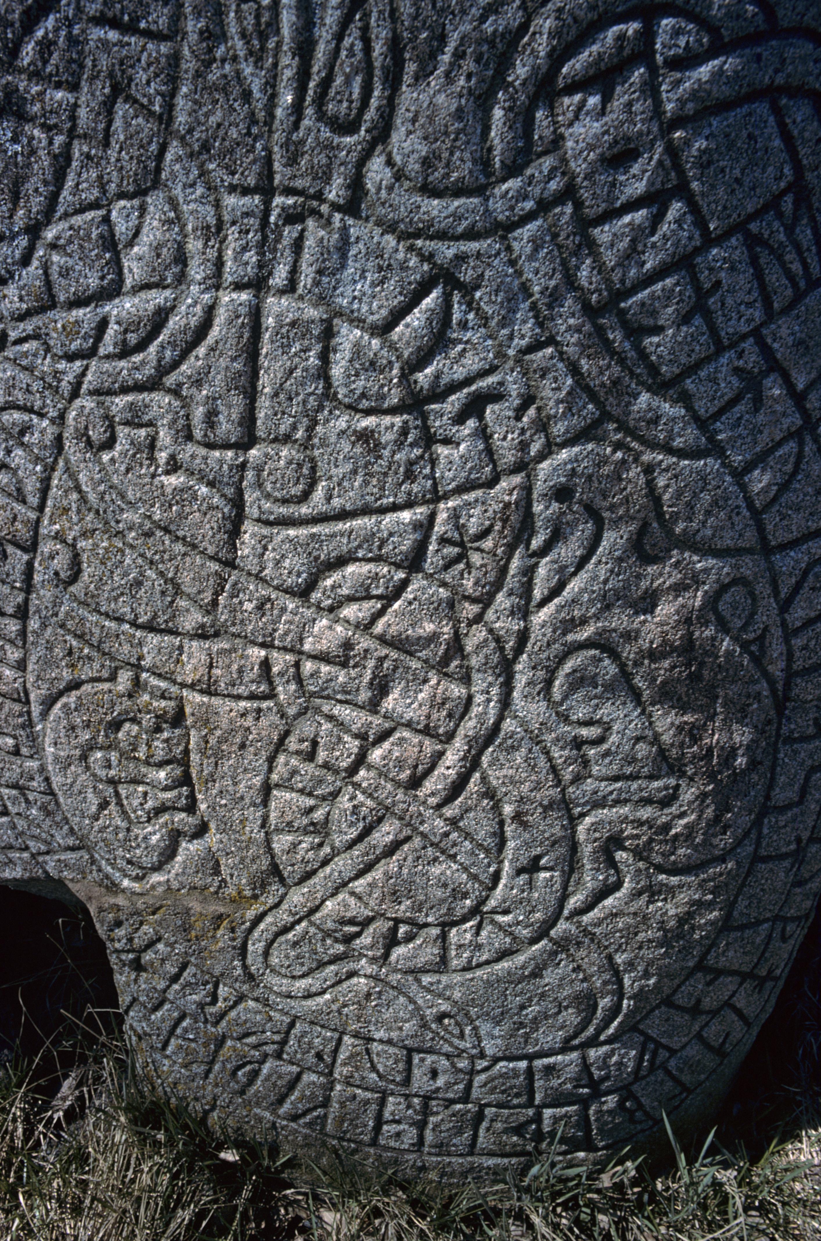 Inskriften lyder: Och Dan och Huskarl och Sven lät resa stenen efter Ulvrik, sin farfar. Han hade i England uppburit två gälder. Gud och Guds moder hjälpe faderns och sonens själar.