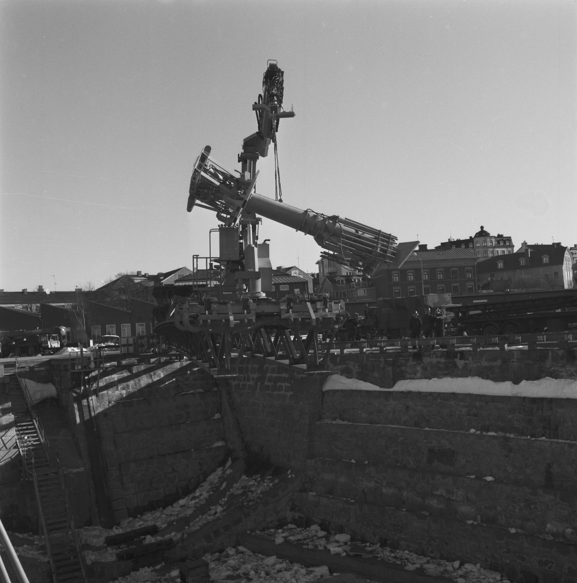 Prov lyft med stödben till bro 6 i docka 1