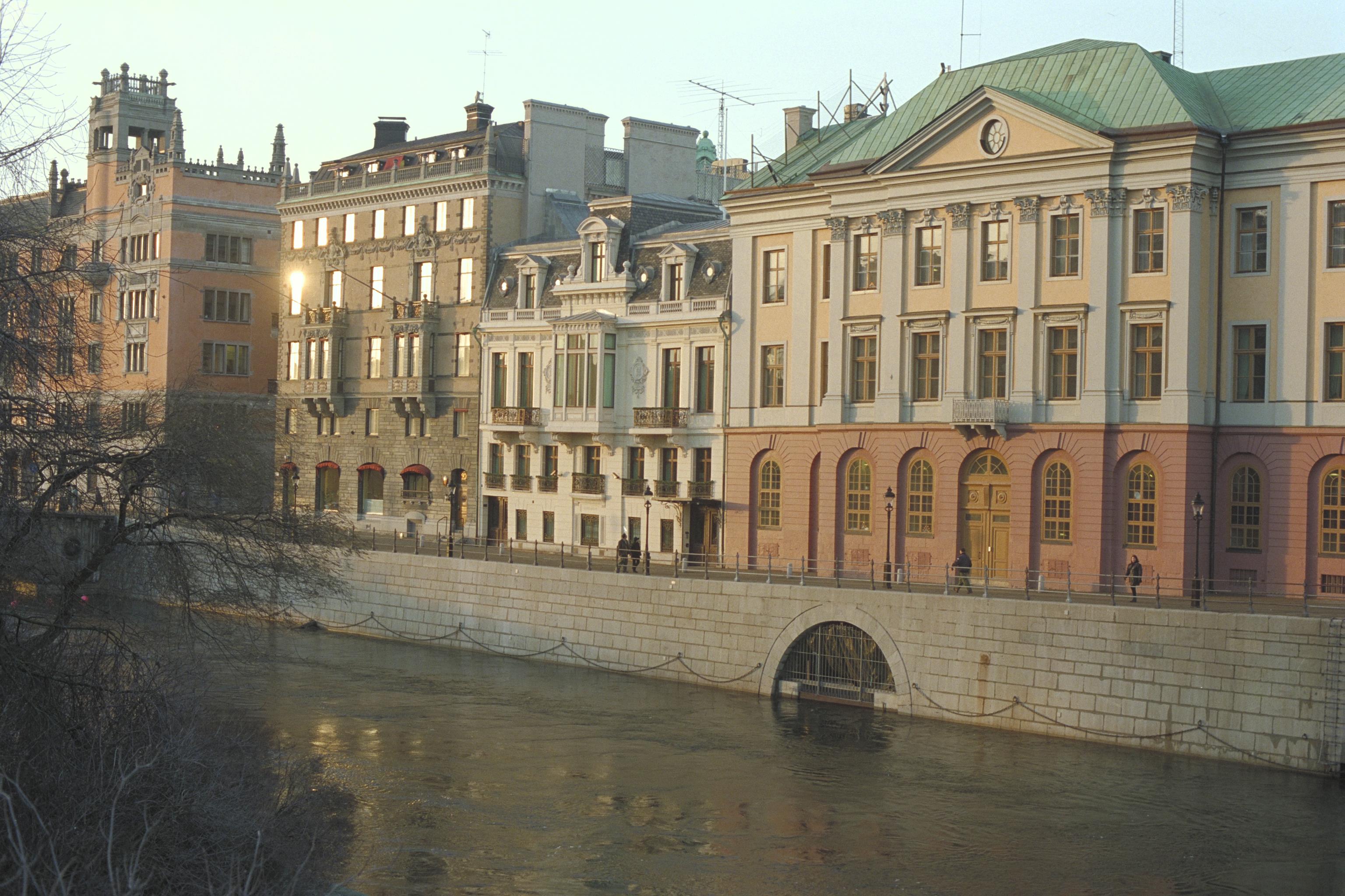Frontfasaden med Strömmen i förgrunden.