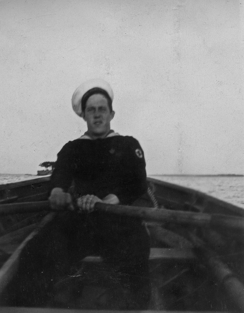 Titel: Sjukvårdare ror barkass vid Smörasken.