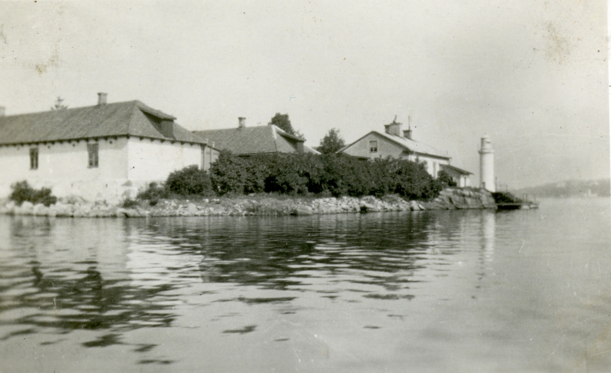 Byggnader på Stumholmen bl a Epidemisjukhuset gula villan. samt fyren