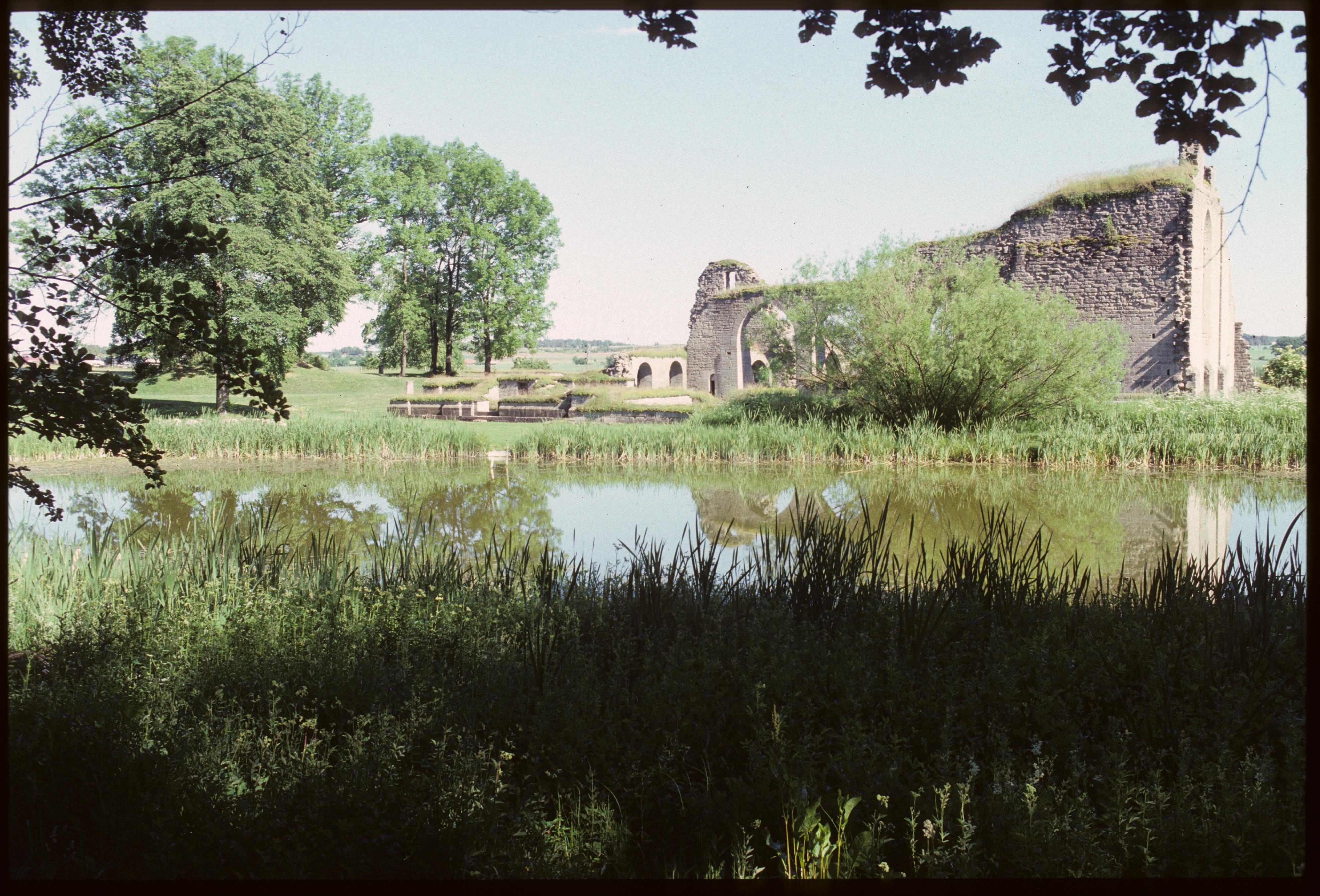 Västra Tollstad 1:1. Klosterkyrkan är 45x20 m (ÖNÖ-VSV), torvtäckta murar av kalksten, ca 1,2 m br och vanligen 1-1,5 m h.