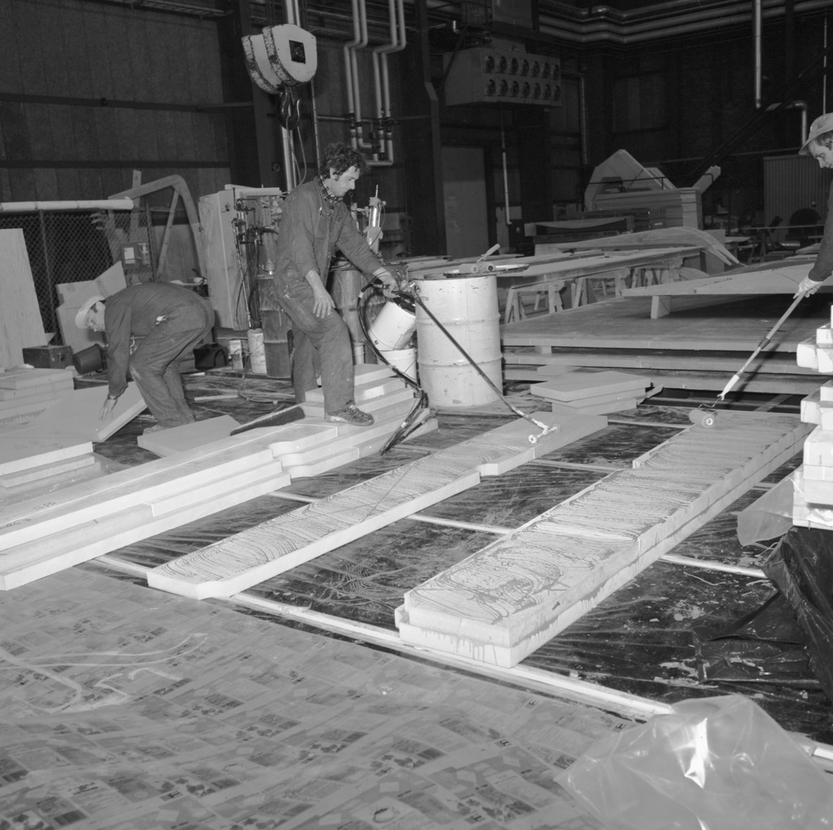 Norska Ses-en båt nr 2 i mellanhallen och sektions tillverkning i flakhallen