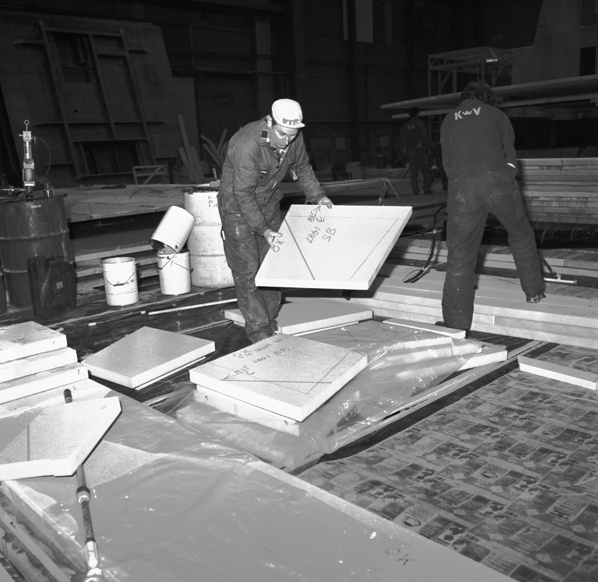 Norska Ses-en båt nr 2 i mellanhallen och sektions tillverkning i flakhallen