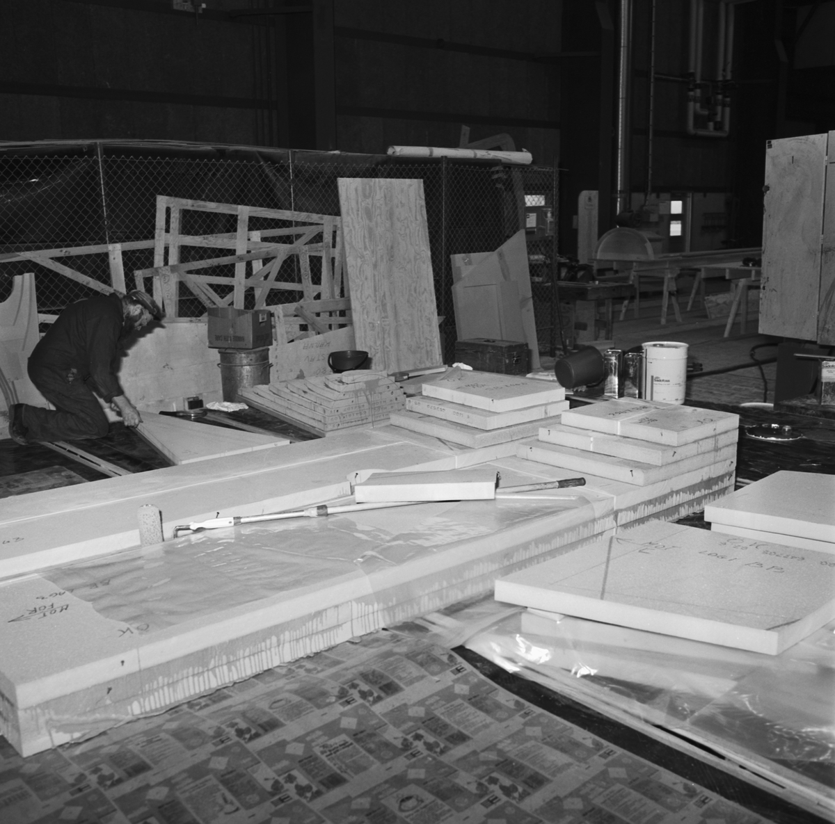 Norska Ses-en båt nr 2 i mellanhallen och sektions tillverkning i flakhallen