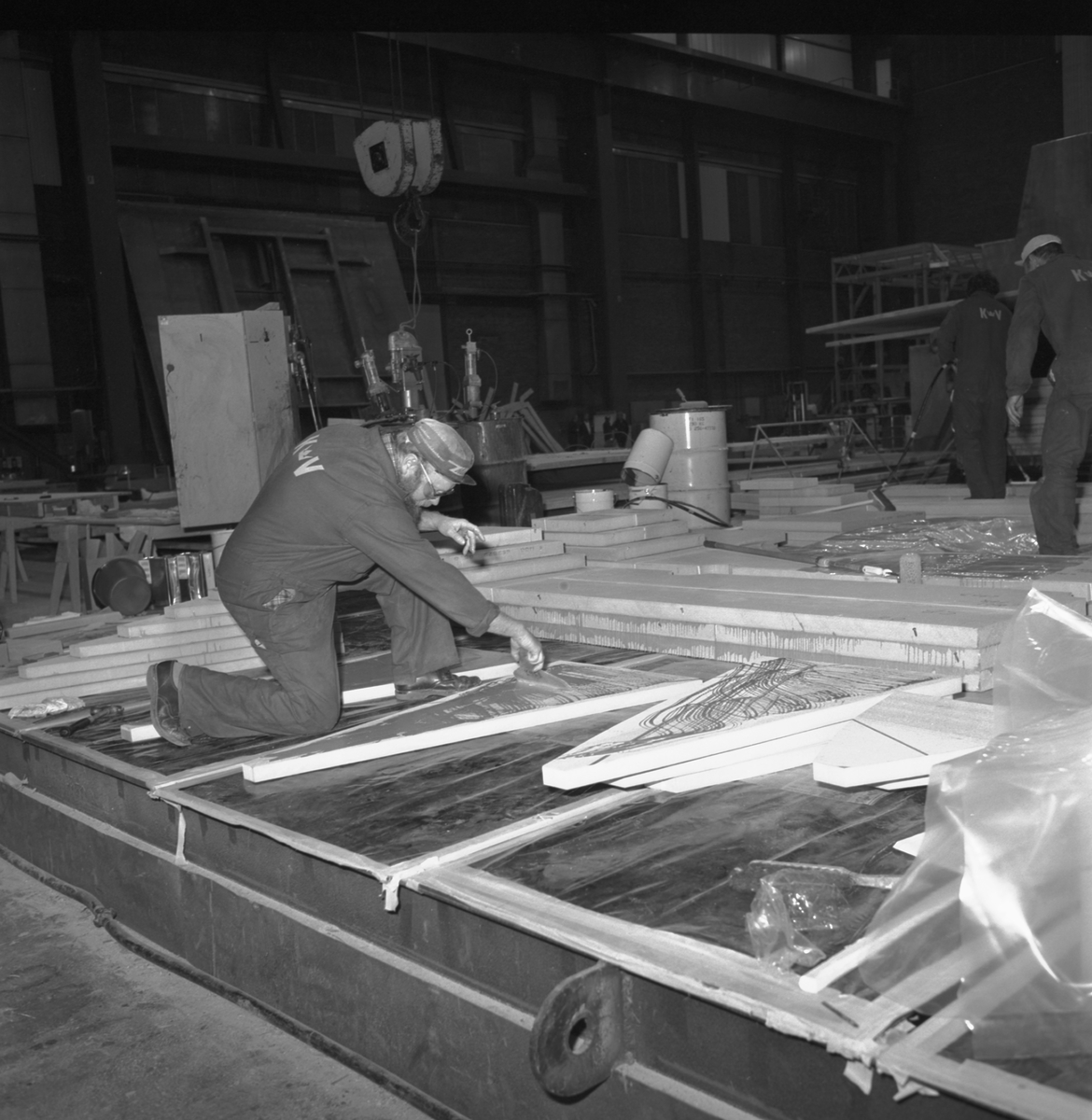 Norska Ses-en båt nr 2 i mellanhallen och sektions tillverkning i flakhallen