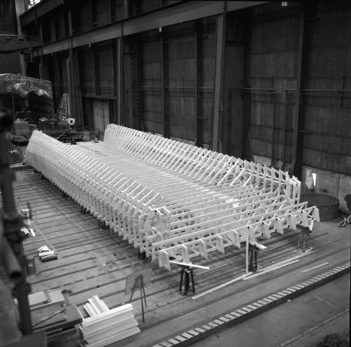 Norska Ses-en båt nr 2 i mellanhallen och sektions tillverkning i flakhallen